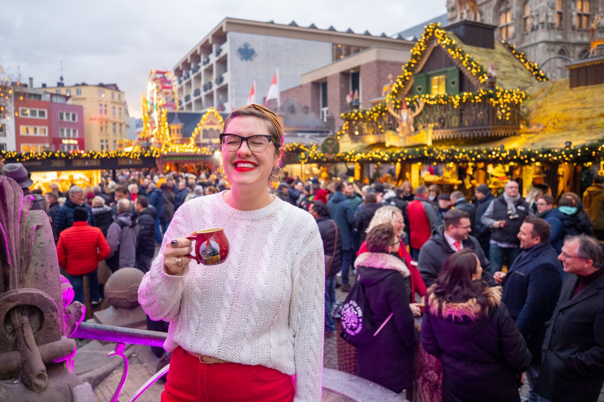 There’s nothing quite like the magical feeling you get at German Christmas markets. Ever since moving to Cologne in 2019, Christmas Markets (or Weihnachtsmarkt in German) have become my happy place. I guess you could say the holiday spirit really got to me! I fell in love with them after visiting all the adorable Christmas Markets in Cologne, and my obsession really just branched from there. There are so many things to love about German Christmas markets – the gift stalls, the lights, the music, the holiday cheer – but one of my favorite things about them is the food. There are SO many delicious things to eat and drink!
